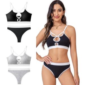 スポーツブラ 上下セット 下着 レディース ブラジャー ショーツセット 2枚 フリーサイズ(ホワイトブラック,  Free Size) スポーツブラ 上下セット 下着 レディース ブラジャー ショーツセット 2枚 フリーサイズ(ホワイトブラック,  Free Size)3,480円 送料無料