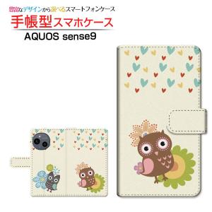 スマホケース AQUOS sense10 クリアケース付 手帳型 ケース カメラ穴対応 ふくろうとハート イラスト キャラクター フクロウ カラフル かわいい