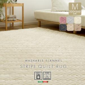 洗える ストライプ柄フランネルキルトラグ 200cm×200cm