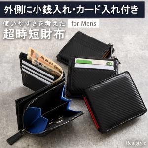 財布 メンズ 二つ折り L字ファスナー 小銭入れあり 外側 大容量 使いやすい お札2か所 中仕切りあり 小さめ おしゃれ カードケース カーボン調 コンパクト 時短