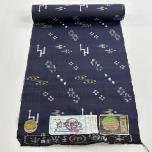 反物 逸品 紬 証紙有り 琉球かすり 手織り 燕 流水 濃紺 正絹 中古