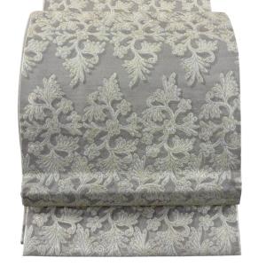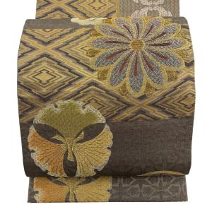 美品 袋帯 秀品 花 銀杏 金銀糸 刺繍 茶色 六通 正絹 中古