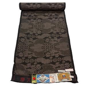 反物 秀品 大島紬 証紙 雲文 花 焦茶色 正絹 中古