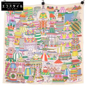 美品/ HERMES エルメス LA PATISSRIE FRANCISE カレ90 シルク100% スカーフ アイボリー レディース