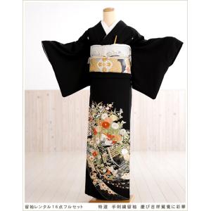 留袖 レンタル 黒留袖 フルセット 着物 結婚式 貸衣装 祝鶴 牡丹 菊 流れ熨斗 花車 爆買