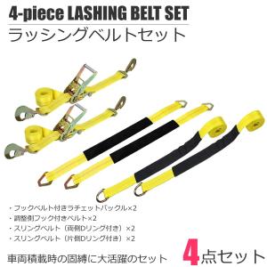 ラッシングベルト スリングベルト Dリング付き 4点セット 積載車 レッカー 固縛ベルト 固定 ロードサービス / 158-157+158-194×2