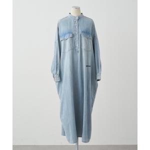 ワンピース ヴィンテージライクデニムバンドカラーワンピース