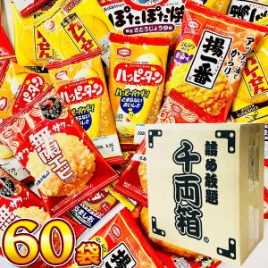 亀田製菓 千両箱入り! 均等入り ハッピーターン ・ カレーせん ぽたぽた焼 無限エビ など!小分け小袋 6種類合計60袋 詰め合わせセット 送料無料