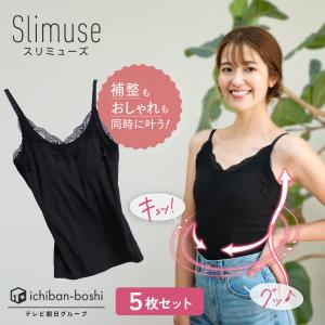 スリムアップキャミソール 5枚+二の腕シェイパー1枚 補整下着 Slimuse くびれ 着痩せ ぽっこりお腹 着圧 体型カバー バストアップ ブラック