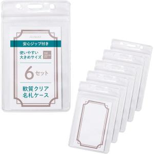 名札ケース 名札ホルダー 大きめ 名刺 サイズ 社員証 id カード イベント用 パスケース 両面 透明 防水 (縦型, 6セット)