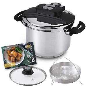【光熱費節約・時短】アイリスオーヤマ 圧力鍋 5.0L IH対応 内側目盛り付 【レシピ本・ガラス蓋付き】 3層底 スライド開閉 圧力2段切替