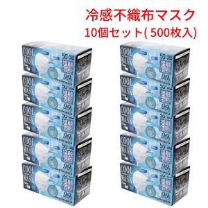 冷感不織布マスク ホワイト 50枚入×10個(合計500枚入り) 接触冷感 冷感マスク ひんやり HIRO ヒロコーポレーション