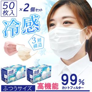 2個セット マスク 夏用 ひんやり 冷感 不織布 接触冷感 50枚入り 2箱 100枚 接触冷温感0.332 使い捨て 大人用 風邪 対策 it-8453-2set あすつく 送料無料