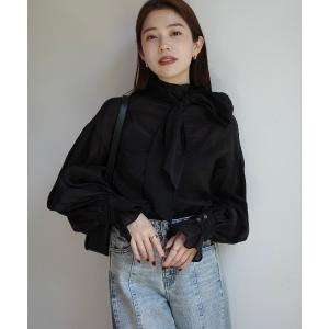 ブラウス シャツ ハイネックシアーボウタイブラウス レディース