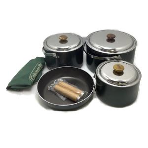 ▲▲ Coleman コールマン アウトドア 鍋セット クッカー フライパン 4点セット グリーン 傷や汚れあり
