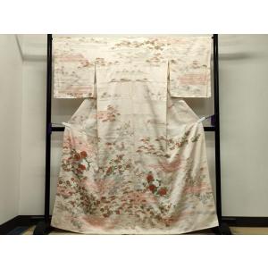 平和屋着物●創業460年・千總 訪問着 刺繍 流水草花文 金彩 正絹 逸品 未使用 CABA9764gh