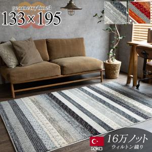 おしゃれ カーペット 1.5畳 ボーダー柄 ラグ 133×195cm エスニック 調 トルコ じゅうたん 高弾力! ラグマット