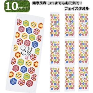 【10枚セット】健康長寿 いつまでもお元気で! 亀甲柄 フェイスタオル 84×34cm 綿 個包装 OPP袋入り 敬老の日 粗品 記念品 老人ホーム 施設用 ノベルティ