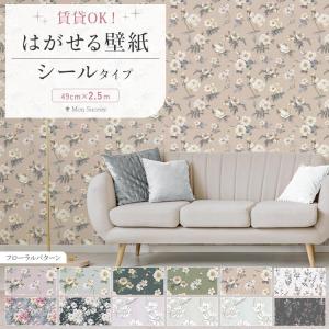 壁紙シール はがせる壁紙 張り替え 自分で おしゃれ 花柄 水色 ピンク 白 49cm×2.5m