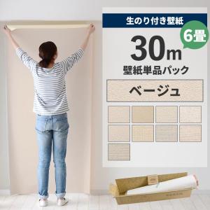 壁紙 のり付き 30m クロス 張り替え 自分で 無地 ベージュ アイボリー 補修 替え刃 貼り方マニュアル付き 6畳