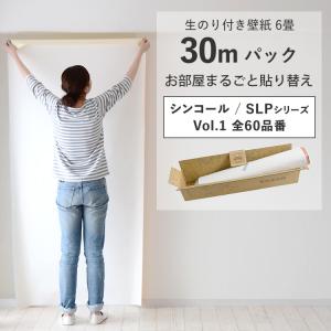 壁紙 のり付き 30m クロス 張り替え 自分で 無地 白 グレー 織物調 石目調 木目 ナチュラル シンコール SLP DIY おしゃれ