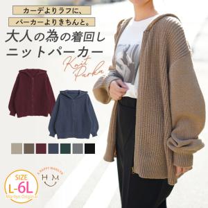 大きいサイズ レディース トップス 編地切替え・ニット ジップパーカー オリジナル セーター LL 3L 4L 5L 6L 冬 冬物 冬服 A