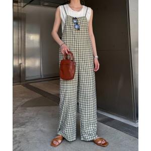サロペット オーバーオール 「妊婦さんや低身長ぽっちゃりさんサイズあり」チェック切り替えキャミサロペ レディース