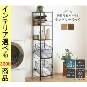 脱衣所ラック 33×47.5×160.5cm スチール 5段タイプ カゴ付き ウォールナット・シャビーオーク色 YHVLRZ2B
