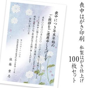 喪中はがき印刷 私製はがき仕上げ 100枚 年賀状じまい 年賀状やめる 全国送料無料 校正対応 オプションで宛名印刷も可