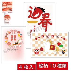 年賀状 2026年 令和8年 午年(馬年・うま年) 郵便局 お年玉付き年賀はがき 4枚入り 年賀パック NP