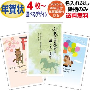 絵柄のみ年賀状 お年玉付き郵便葉書代込 名入れ印刷なし 4枚セット〜