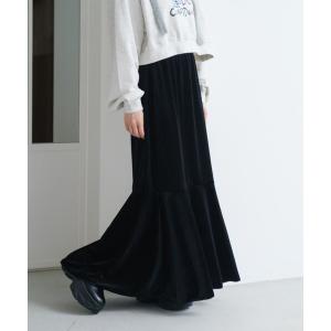 スカート 「WEB・一部店舗限定/2サイズ展開/低身長サイズ」ベロア裾フレアスカート