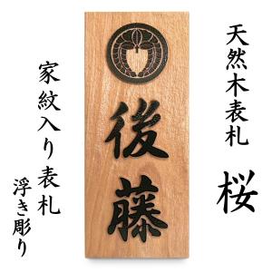 表札 木製表札 浮き彫り 家紋 戸建て 天然木 玄関 さくら