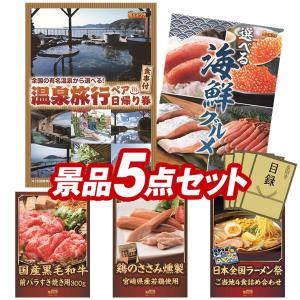忘年会 景品セット 5点 結婚式二次会 ゴルフコンペ イベント パーティーにも最適!目玉は選べるペア日帰り入浴+食事付きプラン!