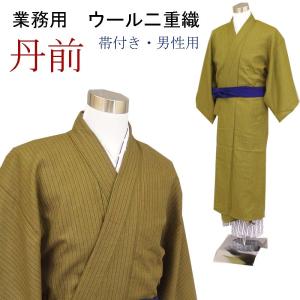 ウール丹前 二重織 旅館ホテル仕様 男性用 No.11黄色縞 帯付き