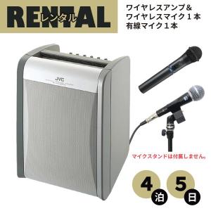 レンタル ワイヤレスアンプ ハンド型ワイヤレスマイク1本&有線マイク1本 セット 4泊5日プラン JVC ビクター ケンウッド PE-W51S-M(有線マイク ケーブル付き)