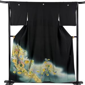 黒留袖 身丈157cm 裄丈63.5cm S 袷 松井青々 落款あり 桐 金糸 金銀彩 黒 正絹 名品 中古