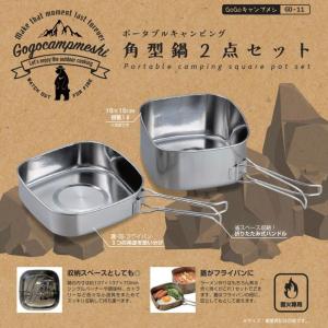 GOGOキャンプメシ ポータブルキャンピング角型鍋 2点セット ★40個以上で送料無料 /アウトドア/片手鍋/キャンプ/クッカー/食器/調理/料理