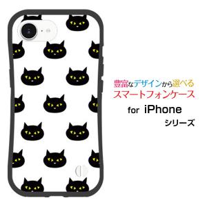 スマホケース iPhone 16e アイフォン シックスティーンイー 耐衝撃 ハイブリッドケース ストラップホール付 ブラックキャット ねこ 猫 黒 ドット ポップ