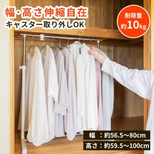 ハンガーラック 押入れ クローゼット収納 伸縮式 キャスター付き 2WAY 耐荷重10kg 衣類収納 簡単組立 模様替え 軽量 子供部屋 押入活用 簡単設置