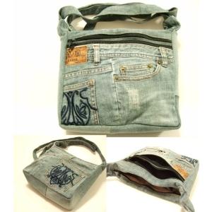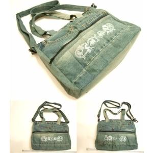 横浜最新 魅惑のデニムショルダーバッグ♪3連巾広チャック リメイクオリジナルバッグ 横巾27cm 縦27cm マチ8cm底板付き 送料無料hei36