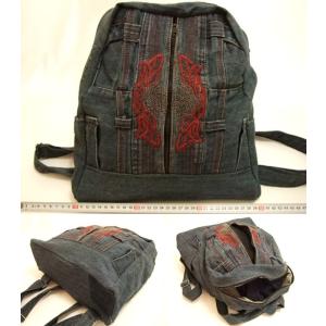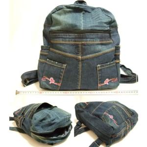 横浜最新 魅惑のデニムおしゃれリュック紺♪リメイクオリジナルバッグ 巾約31cm 縦37cm マチ11cm メンズレディース 送料無料syo63