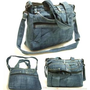 横浜最新 魅惑のデニム小型軽量ショルダーバッグ角型紺♪リメイクオリジナルバッグ 横巾約28cm 縦23cmメンズレディース 送料無料hei89