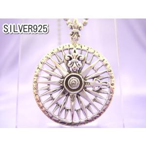 横浜最新 シルバーSILVER925銀♪魅惑のペンダント中世ゆり華麗羅針盤 8g メンズレディース 運気八方位パワー 送料220円ネックレス49
