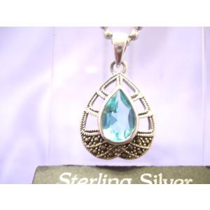 横浜最新 シルバーSILVER925銀♪魅惑のアクアマリン風ペンダント しずく メンズレディース 送料無料ネックレス48a
