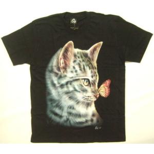 横浜最新 可愛い猫ちゃんとチョウチョ♪魅惑の夜光仕上げTシャツ サイズ M, L, XL 送料無料(サイズを必ずお知らせ下さい)46