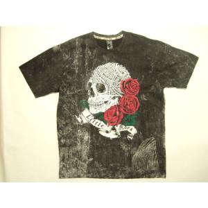 横浜最新 ローズ&ドクロスカール 黒絞り柄♪魅惑のTシャツ Roses&Skull L, XL 送料無料25(サイズを必ずお知らせ下さい)
