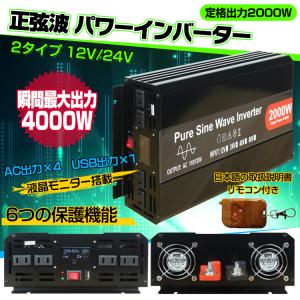 発電機 インバーター 正弦波 12v 24v 車中泊 2000w dc 変換 ac カーインバーター 正弦波インバーター12v dc12ac100v コンセント リモコン付 便利グッズ 車 防災