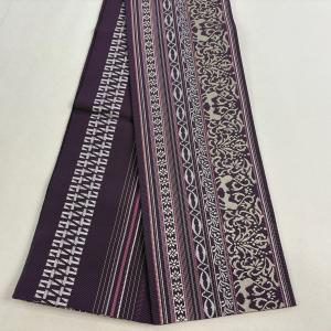 美品 半幅帯 名品 やまと 動物 草花 紫 正絹 中古
