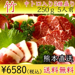 馬刺し 熊本 国産 竹 250g 中トロ 上赤身 バラウス ロース ユッケ タレ付き 5種盛り 約5人前